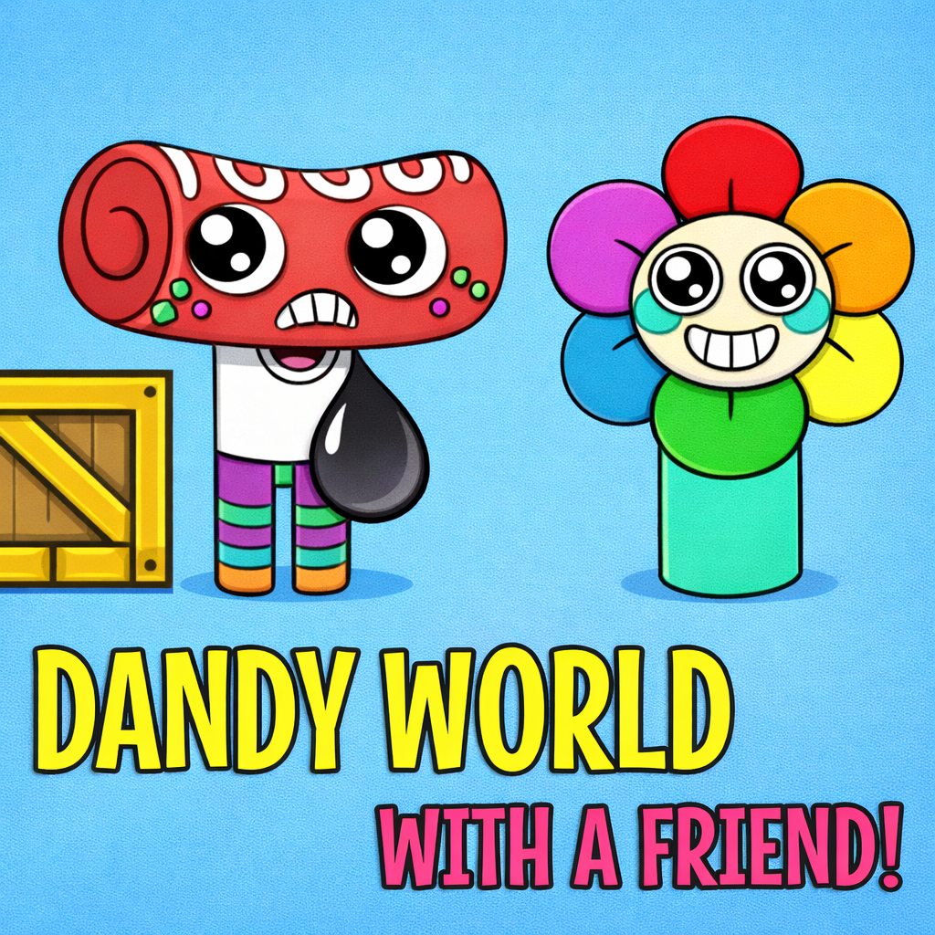 Dandy World with a Friend! is a fun action game for two players, featuring a clear and convenient split-screen mode. Players will enter a large, colorful map where Dandy and his friends are ready for thrilling chases. With a cheerful soundtrack and friendly design, the game aims for a lighthearted entertainment experience while still offering engaging competitive elements.