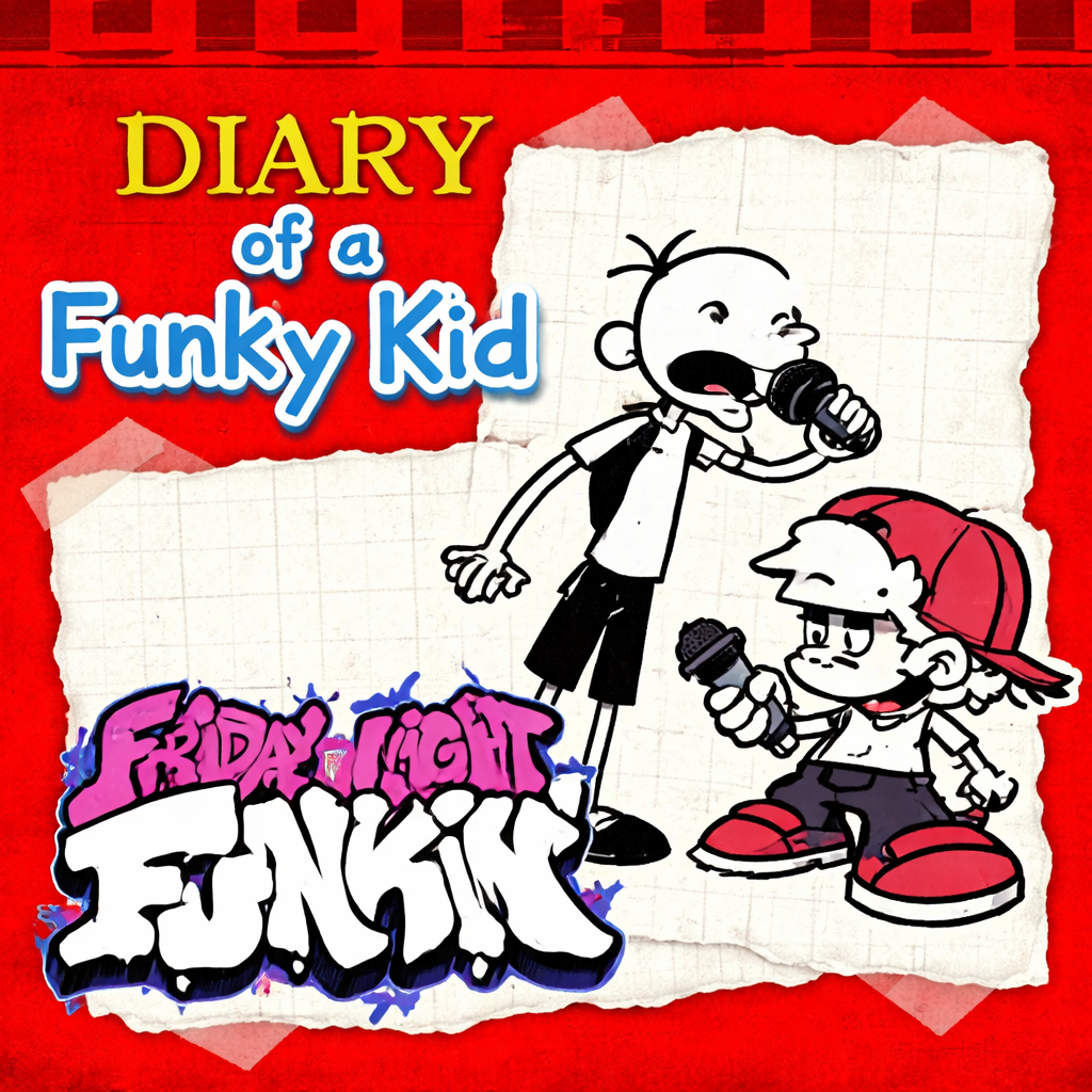 FNF: Diary of a Wimpy Kid brings the familiar Friday Night Funkin’ gameplay into a black-and-white world inspired by the book series. The setting looks like it was drawn on paper, with simple lines and sketch-style characters. Boyfriend faces Greg Heffley in a music battle, turning an ordinary walk home into something unexpected.