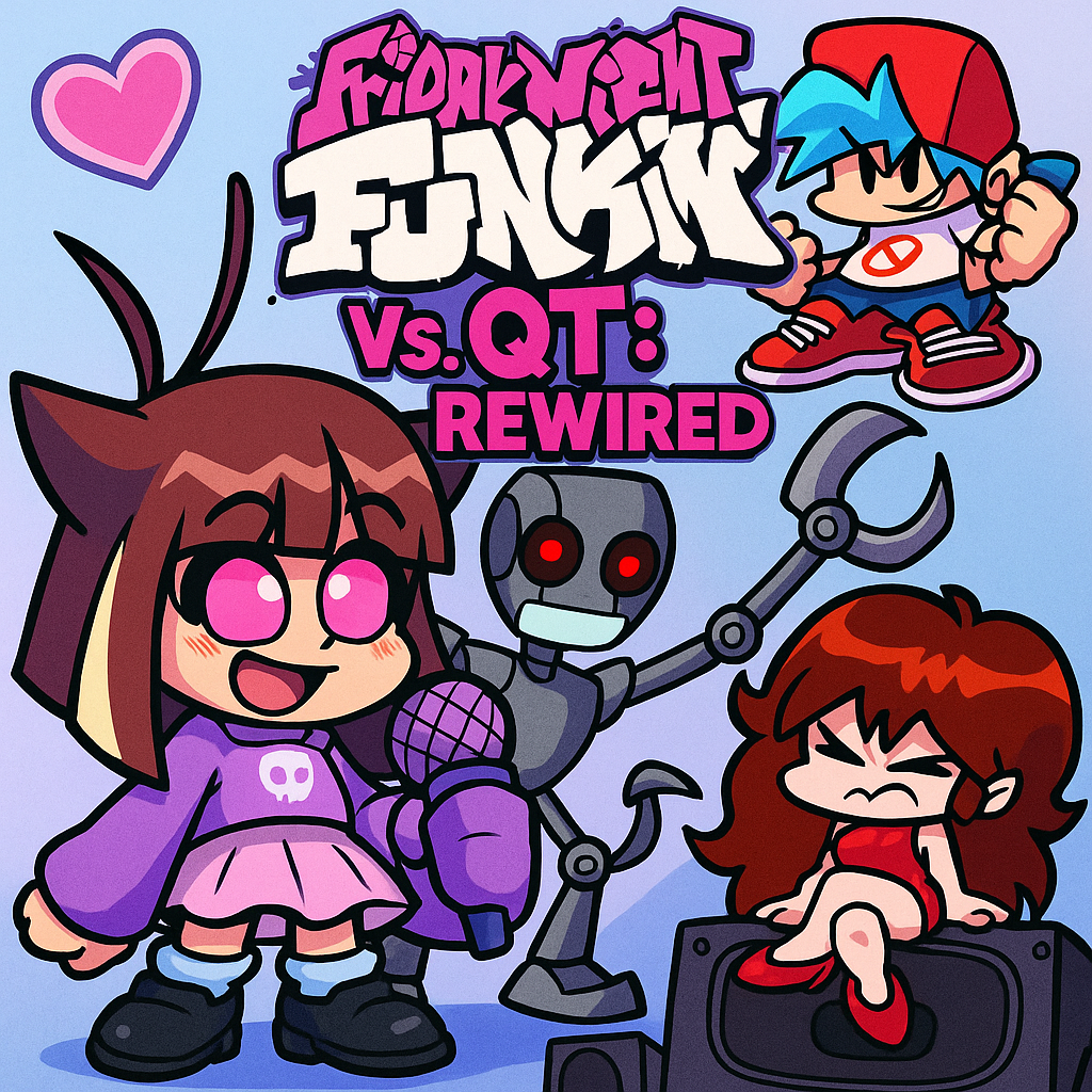 FNF QT: Rewired is reborn from the legendary QT mod created by Hazardous24, with a captivating music battle atmosphere. The songs are completely remixed, the visual effects are improved, and each scene is given more depth. The story begins when Boyfriend hears the echoing sound from an alley. There, QT, the cute girl from years ago, is humming along to the music. Everything seems peaceful until the melody "Obliterated" plays, revealing her other dark side. A robot hidden under a cute appearance, with the ambition to win at all costs! Who would have thought that a duet could turn into such a life-and-death battle?
