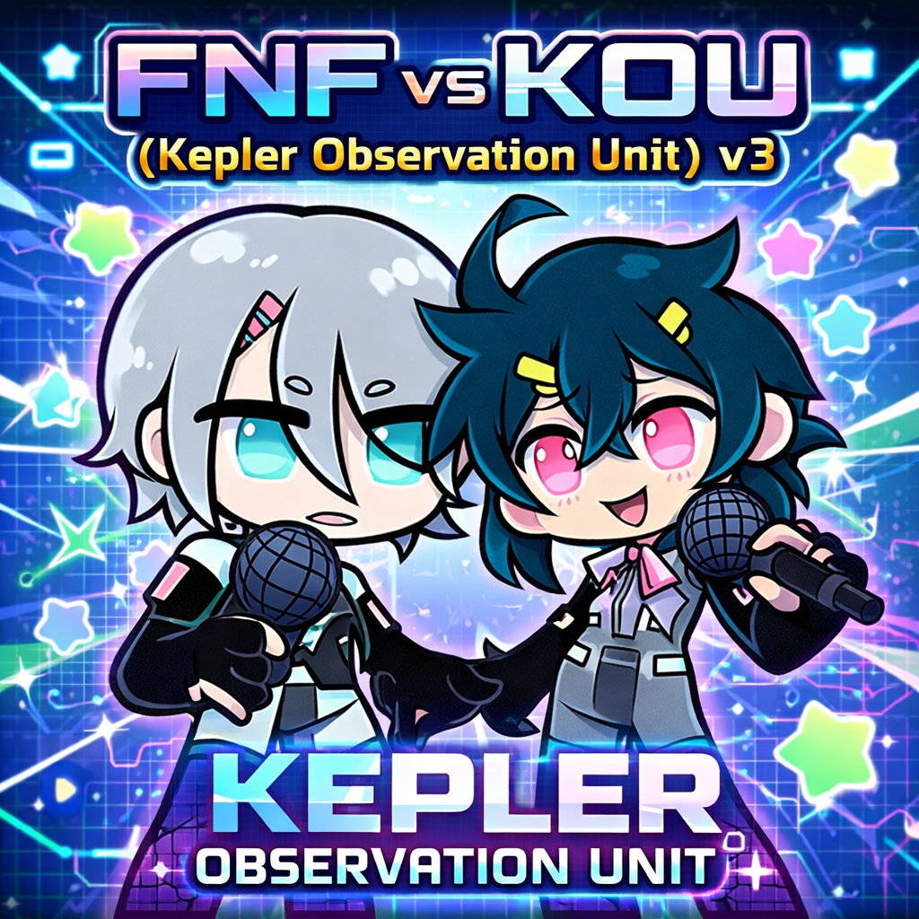 FNF vs KOU (Kepler Observation Unit) v3 is a standout mod for Friday Night Funkin', where Boyfriend enters a colorful rap battle with KOU – a space-loving character at Kepler Observation Station. Version v3 brings significant improvements, from the storyline and new characters to a series of meticulously crafted cutscenes.