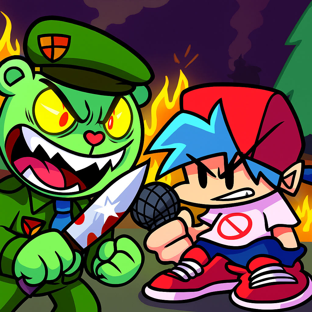 Friday Night Funkin' vs Flippy is a dramatic mod of Friday Night Funkin', where Boyfriend has to confront Flippy the bear, a mentally unstable veteran from the Happy Tree Friends series. Try your hand at it and see if you can keep calm enough to keep up with Flippy's anger!